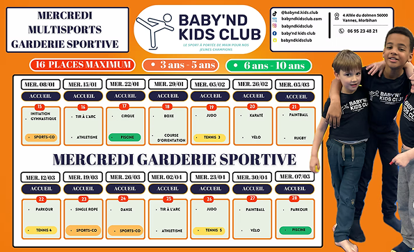 Les mercredis, c’est le moment parfait pour que vos enfants explorent une tonne de sports excitants ! 🎉 Avec plus de 17 sports différents tout au long de l’année, chaque mercredi devient une véritable aventure sportive ! 🤩